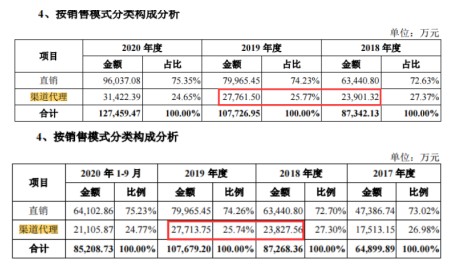 据亚信安全首次招股书披露,2018年、2019年公司渠道代理营收分别为23827.56万元、27713.75万元。而与此同时,公司发布更新招股书中披露2018年、2019年通过渠道营收实现金额分别为23901.32万元、27761.50万元。可以看出,公司对渠道营收披露存在明显的差异,但是在更新招股书中公司并没有给予相关说明差异原因。而奇怪的是,公司对于直销客户披露销售金额却分毫不差,说明公司对渠道代理营收披露存在一定的瑕疵,令公司营收数据真实存疑。