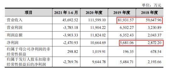 招股书披露,2019年营业收入为81931.57万元,较2018年业绩增长22283.61万元,业绩增长幅度为37.36%,净利润实现5681.06万元,较2018年增长2808.86万元,净利润增长幅度为97.79%。由此可知,公司营业收入及净利润均比2018年出现大幅增长,按照常理公司估值应出现大幅提升,而奇怪的一幕却发生了,估值不仅没有增加反而出现下滑。
