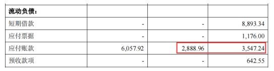 2019年至2021年,公司应付票据及应付账款金额合计分别为4723.24万元、2888.96万元、6057.92万元,分别较上期增加-967.05万元、-1834.28万元、3168.96万元。分别与应形成债务金额之差分别为2857.68万元、13144.79万元、7002.08万元。