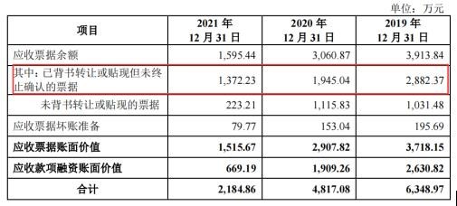 在支付采购金额中,公司存在通过票据背书转让支付采购情况。招股书披露2019年至2021年公司已背书转让或贴现但未终止确认的票据金额为2882.37万元、1945.04万元、1372.23万元。财务勾稽之后,2020年至2021存在11199.75万元、5629.85万元无财务数据支撑,涉嫌虚假采购虚构成本。