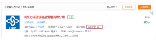 公司任公总经理孙雪莲女士,其曾在2001 年 11 月至 2004 年 2月,担任山东力诺玻璃制品营销有限公司市场部部长。而据天眼查显示,山东力诺玻璃制品营销有限公司成立于2003年7月28日,孙雪莲任职山东力诺玻璃制品营销有限公司时间大幅早于其成立时间,或存在履历虚假披露情况。