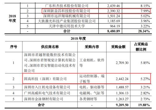 2018年也出现类似情况,固高科技招股书披露2018年对第二大客户深圳新益昌科技股份有限公司销售金额为2390.32万元,占据当期营业收入比为7.99%。而在深圳新益昌科技股份有限公司招股书中披露,其对固高科技采购金额为2442.24万元,与公司销售金额之差为51.92万元。2018年公司与客户新益昌购销之差与2019年相当,是机缘还是巧合?