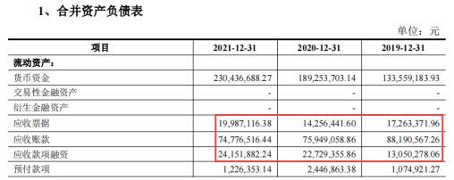 固高科技招股书披露,2019年至2021年应收票据分别为1726.34万元、1425.64万元、1998.71万元,应收账款分别为8819.06万元、7594.91万元、7477.65万元,应收款项融资分别为1305.03万元、2272.94万元、2415.19万元,三项合计分别为11850.43万元、11293.49万元、11891.55万元。分别较上期应收之和仅增加1734.15万元、-556.94万元、598.06万元,分别较上述含税收入与现金流勾稽出的数据少了9174.35万元、7424.96万元、7508.15万元。