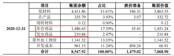 但是,固高科技招股书中披露2020年存货中发出商品及库存商品金额合计为1697.47万元,较2019年不增反降97万元,因此公司2020年存货中发出商品及库存商品金额较实际少359.11万元。