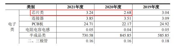 公司芯片主要通过电子元器件分销商向国际知名品牌采购,包括处理器芯片、逻辑芯片、存储芯片、电源芯片等。2021年,公司采购价格为3.24元/只,较2020年大幅上涨20.90%。芯片价格大幅上涨,导致2021年毛利率下滑1.53%。芯片价格大幅上涨导致2022年公司毛利率出现大幅下滑。2022年1-6月综合毛利率较上年同期下降3.23%。