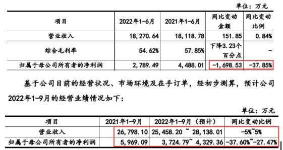 毛利率下滑直接导致公司盈利能力大幅下滑,2022年1-6月,公司在营业收入增长0.84%的背景之下,归属于母公司所有者的净利润大幅下降1695.53万元,同比下滑37.85%。2022年1-9月公司预计归属于母公司所有者的净利润同比下滑27.47%-36.30%,因此2022年公司盈利能力下滑已成定势。