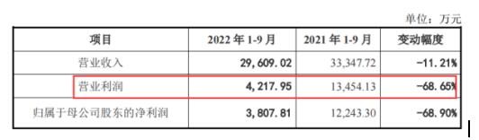 未上市之前出现盈利能力断崖式下滑的拟上市公司并不多见,而此次计划闯关的微源股份却存在此种情况,2022年前三季度在营业收入下滑11.21%的情况之下,营业利润急速下滑68.55%,盈利能力堪忧。