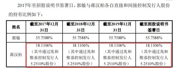 查阅公司招股书显示,2017年至招股说明书签署日蒋汉柏通过通过兆和惟恭控制公司5.2510%股份。按照常理分析既然实际控制与一致行动人蒋汉柏直接和间接合计持有公司75.75%股份,那么实际控制人与一致行动人蒋汉柏控制公司股份比例高于75.75%。而公司却披露,直接和间接合计控制公司73.87%股份,低于实际控制人与一致行动人蒋汉柏直接和间接合计持有公司75.75%股份,这明显与实际情况不符,涉嫌虚假披露。