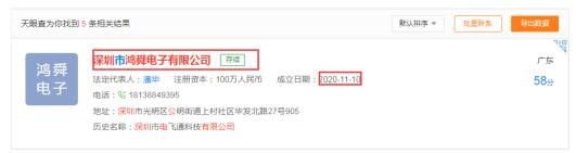 招股书披露,公司监事会主席李永康在2004年 9 月至 2008 年 10 月任深圳鸿舜电子有限公司副经理。而天眼查显示,深圳鸿舜电子有限公司成立时间为2020年11月10日,李永康是怎么样亏越16年在该公司成立之前任职。