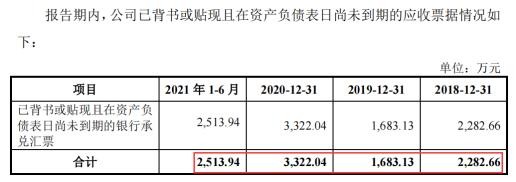 这部分缺口应由票据背书出现,招股书披露公司已背书或贴现尚未到期的应收票据金额分别为2282.66万元、1683.13万元、3322.04万元、2513.94万元,因此公司2018年至25020年存在3176.03万元、2917.98万元、445.07万元含税营业收入既未收到现金,又未体现在应收的债权上,成了无源之水,而2021年1-6月却是正常水平
