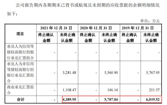 在支付采购金额中,公司存在通过票据背书转让支付采购情况。招股书披露2019年至2021年,公司已背书未终止确认票据金额分别为6019.52万元、5707.04万元、4389.95万元,财务勾稽之后公司还存在12531.30万元、9718.30万元、14110.41万元无财务数据支撑,涉嫌虚假采购。