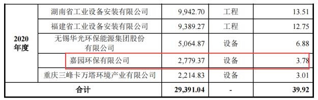 朗坤环境招股书披露,嘉园环保有限公司2020年成为公司第四大供应商,公司对其采购设备金额为2779.37万元,占当期采购总额比为3.78%。据天眼查显示,嘉园环保有限公司为上市公司汉威科技控股83.90%企业,因此嘉园环保有限公司财务数据被汉威科技合并。