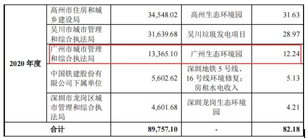 与此同时,公司在首次披露招股书显示,2020年公司对客户广州市城市管理和综合执法局通过广州生态园实现营业收入却为13365.10万元,占当期营业收入比为12.24%。由此可知,朗坤环境对同客户同项目产生的营业收入却现场上千万元。