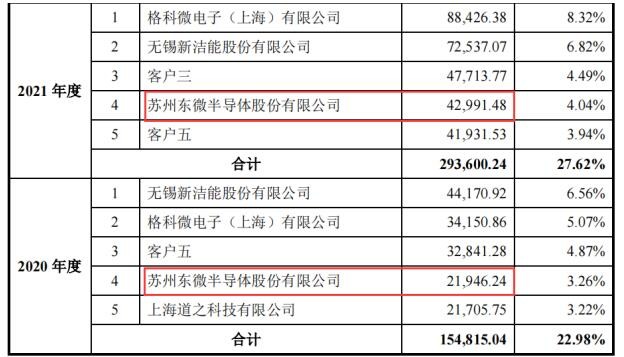 此次计划闯关科创板华虹半导招股书披露,苏州东微半导体股份有限公司为公司2020年、2021年前五大客户,分别对其销售金额为21946.24万元、42991.48万元,分别占当期营业收入比为3.26%、4.04%。